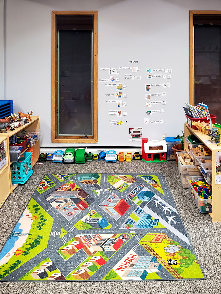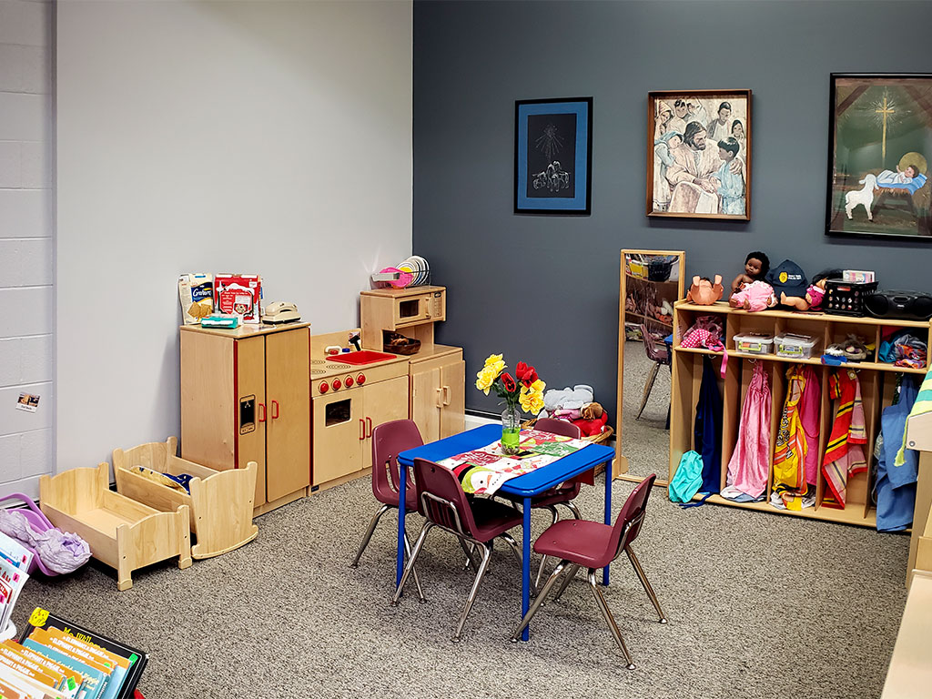 Little Lambs operates inside the building of Immanuel Lutheran Church, as a ministry of the congregation. The Little Lambs classroom provides ample space for most learning activities. Little Lambs also makes use of other areas of the building which are approved by the State of Michigan. A playground is adjacent to the building with developmentally appropriate equipment for preschoolers.